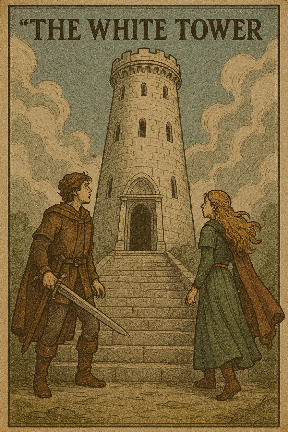 The White Tower — A traditional, calm, symbolic fantasy cover style.