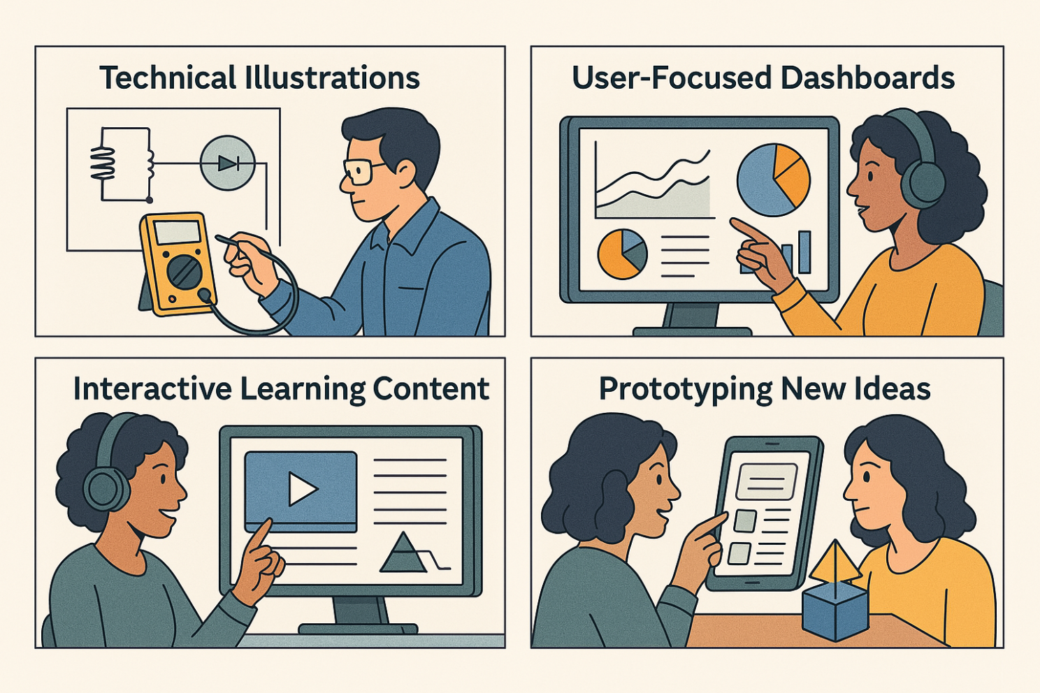 Here are some promising use cases: - Technical illustrations - User-focused dashboards - Interactive learning content - Prototyping concepts